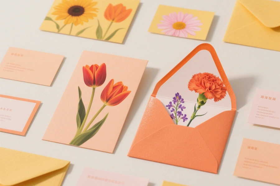 Custom floral note cards and envelopes elevate the presentation of flowers, making the experience more memorable for customers.