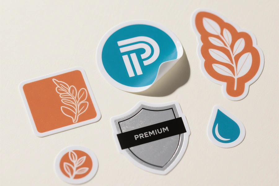 Sustainable stickers made from responsibly sourced paper/vinyl. Biodegradable adhesives and recycled options align with green branding goals.